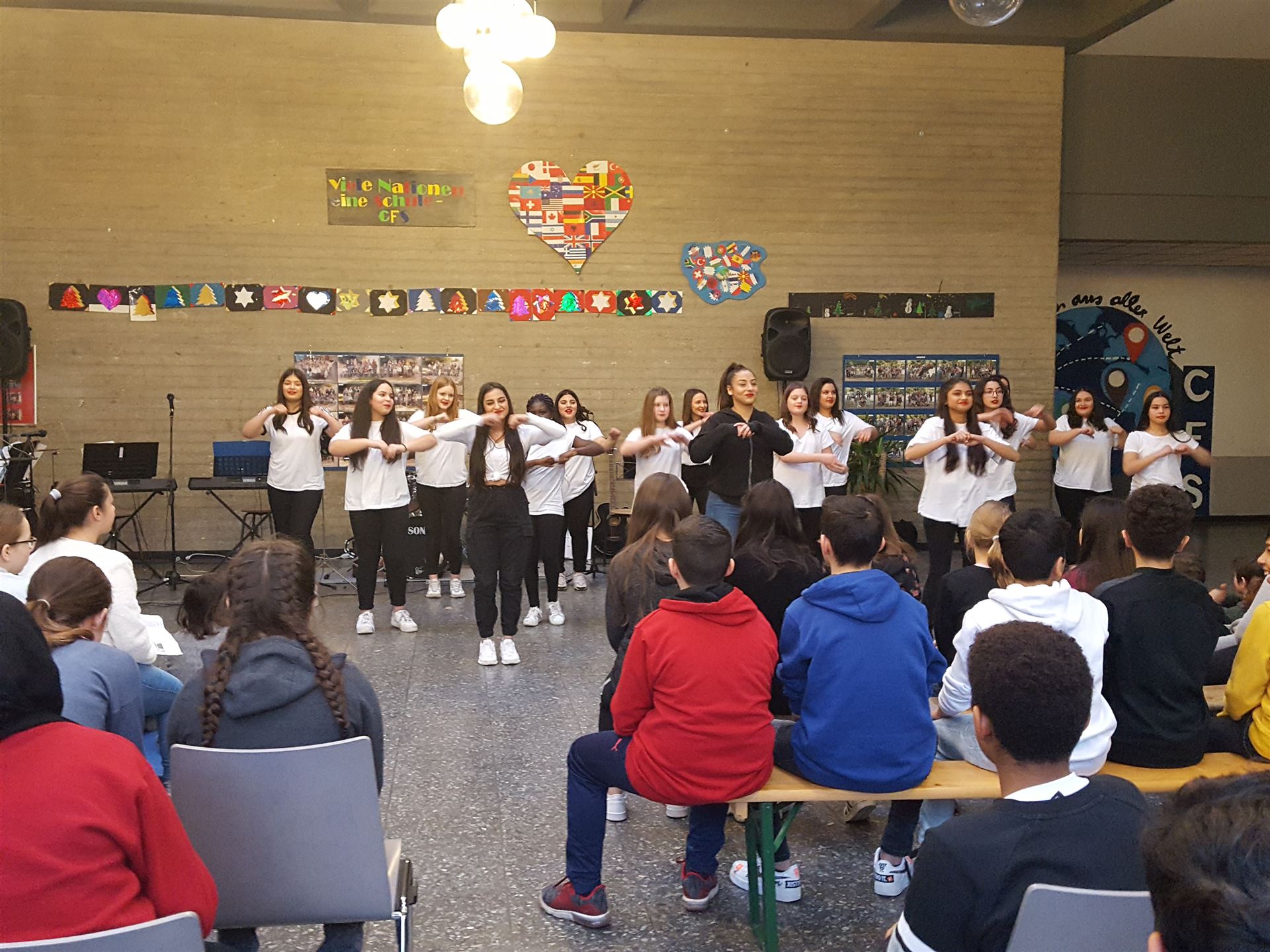 Nachdem wir in den letzten beiden Jahren jeweils ein Weihnachtsvideo mit Schüler- und Lehrerbeiträgen produziert hatten, waren alle begeistert, endlich wieder gemeinsam die Musikstücke, Wortbeiträge, Theater und Tanz auf der Bühne erleben zu können.