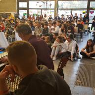 Am Freitag 20.12.2019, dem letzten Schultag vor den Weihnachtsferien, lud die Carl-Fuhlrott-Schule wieder zu ihrer Interkulturellen Weihnachtsfeier ins PZ ein. Diesmal gab es sogar zwei Aufführungen, so dass alle Schülerinnen und Schüler teilnehmen konnten. Im ersten Durchgang erlebten die Jahrgangsstufen 5, 7 und 9, im zweiten Durchgang die Jahrgangsstufen 6, 8, und 10 die Darbietungen mit Musik, Tanz und Wortbeiträgen.