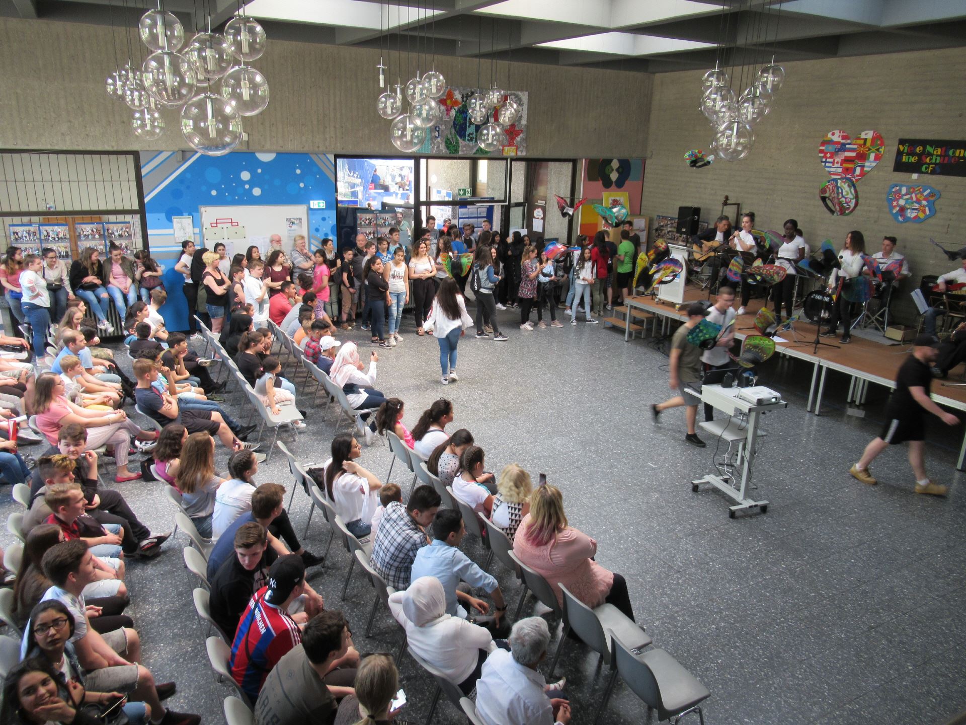 Die offizielle Feier fand im PZ statt. Neben Reden und Grußworten wurde sie aufgelockert durch eine Tanzgruppe der 7. Klassen, ein Video über die Schule im Verlauf der 50 Jahre und durch die musikalische Untermalung durch Schüler- und Lehrerband.