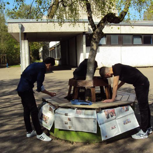 Natürlich wurde vor der Feier die Schule noch einmal richtig "auf Vordermann" gebracht. Im Rahmen von drei Projekttagen wurde gesäubert, gepflanzt, gestrichen, geprobt. Gleichzeitig bereiteten in der Küche Schülerinnen und Schüler kleine Snacks wie vor 50 Jahren vor und einige Gruppen planten Spiele aus den 60er Jahren und Informationsstände über die damalige Zeit für das Sommerfest.