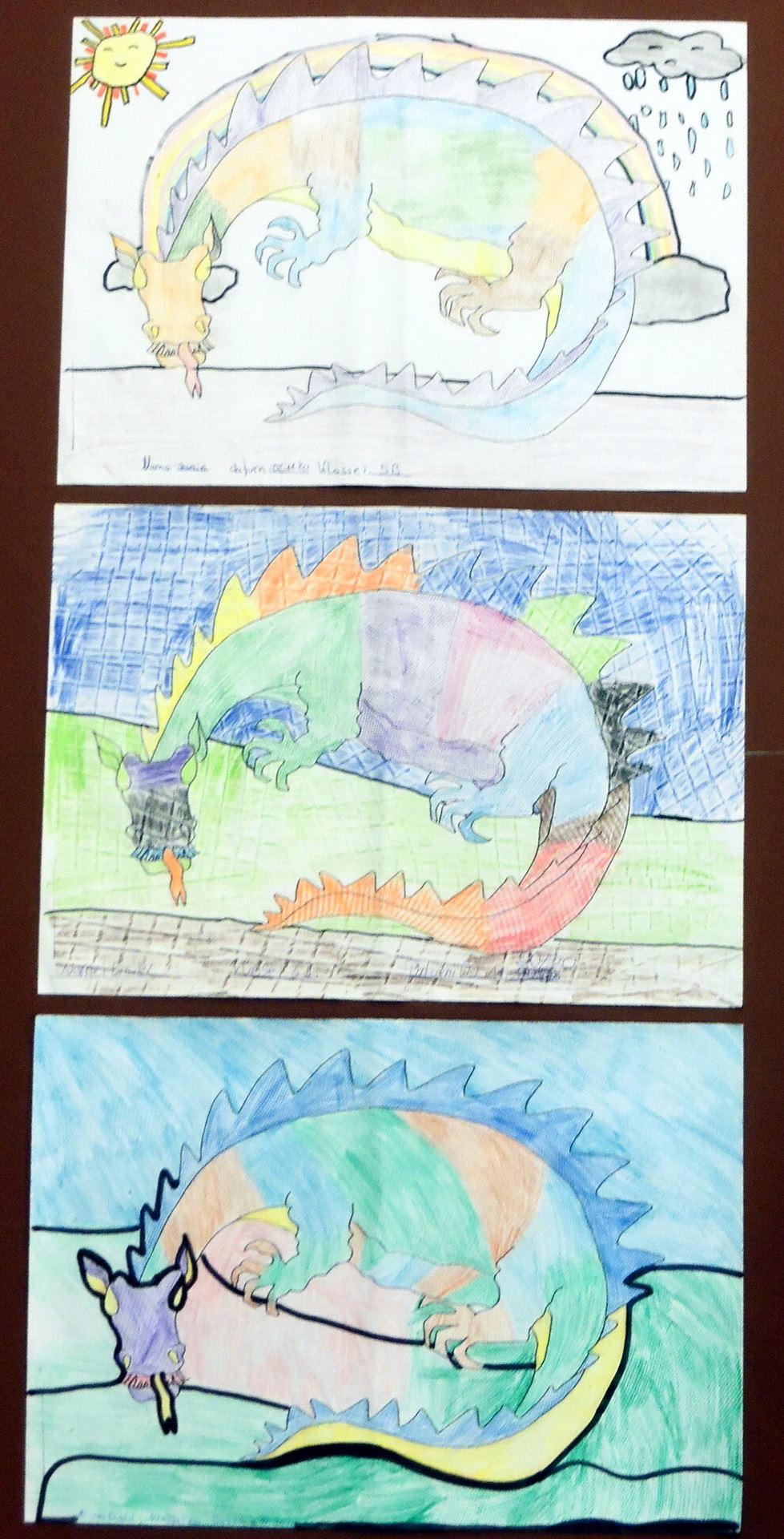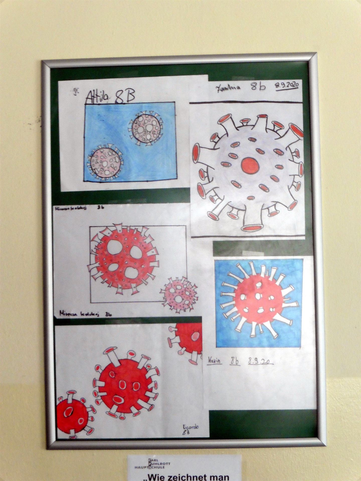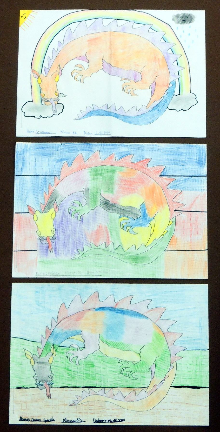 Schülerarbeiten aller Klassen in den Schulfluren 2020/2021 (zum Vergrößern auf die einzelnen Bilder klicken)
