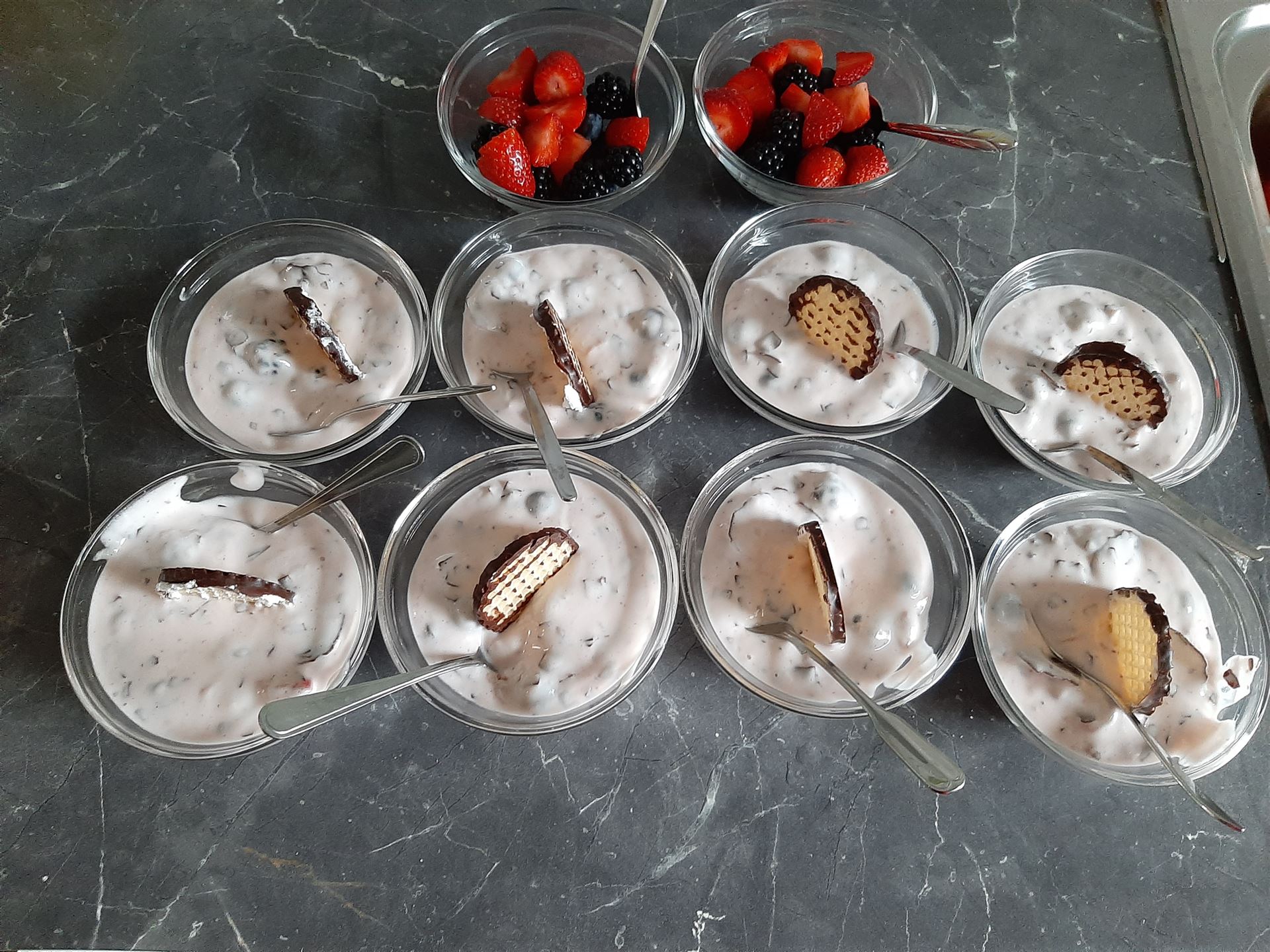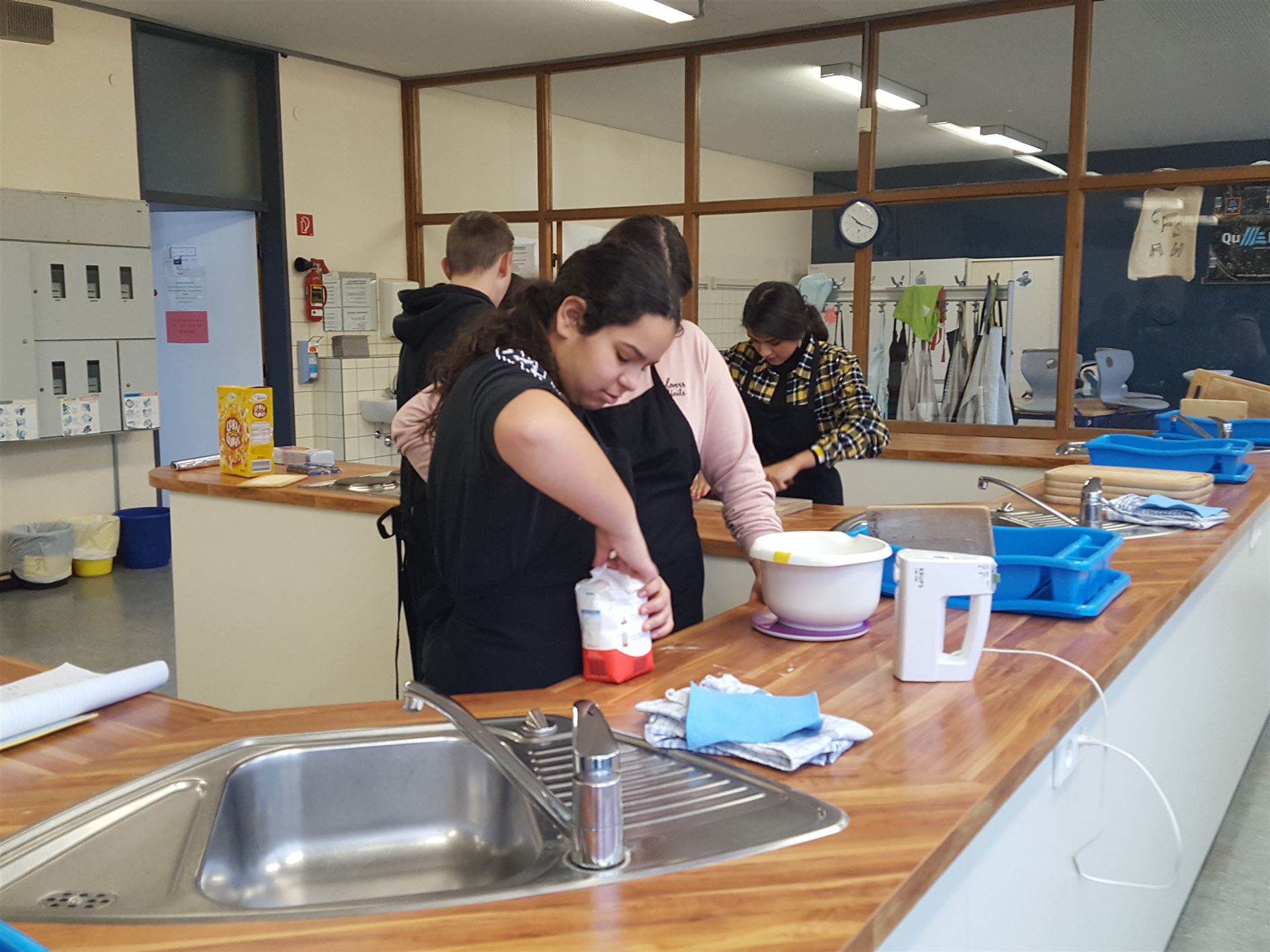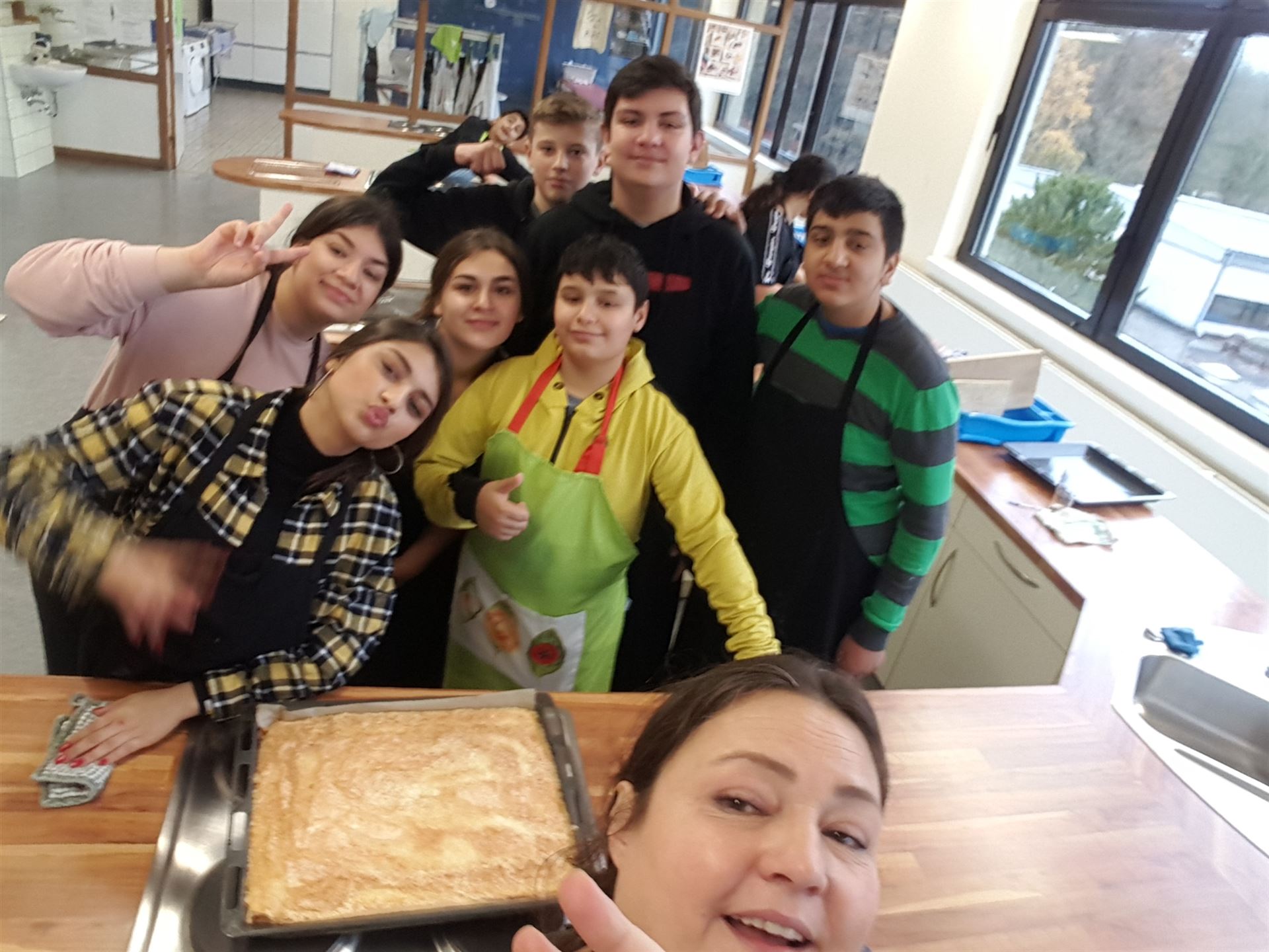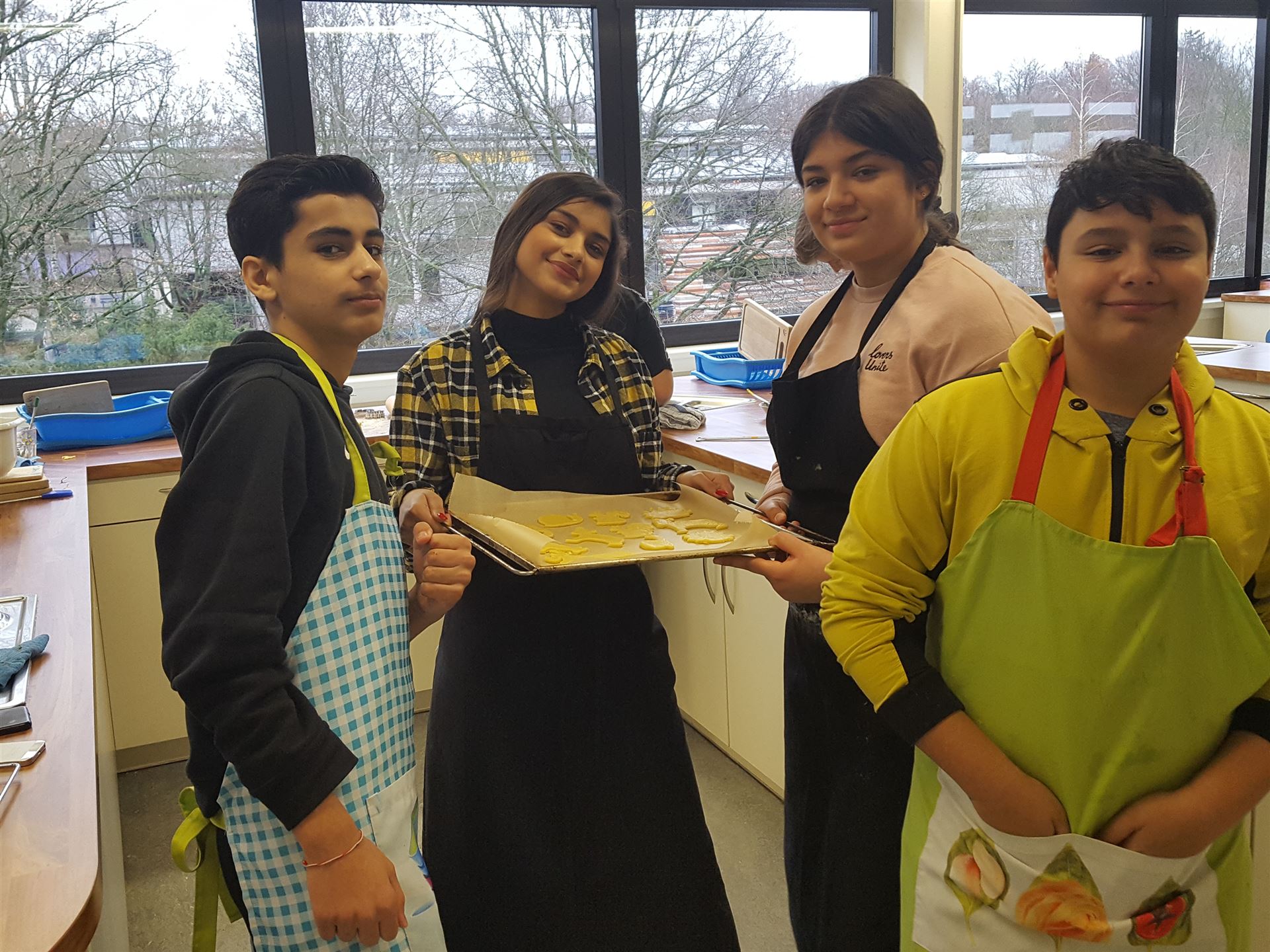 Wir hatten ganze zwei Stunden Zeit um Plätzchen, Schoko-Crossies und Kokoskuchen zu zubereiten. Die Küche versank im Chaos, aber alle haben fleißig beim Backen und aufräumen mitgemacht.