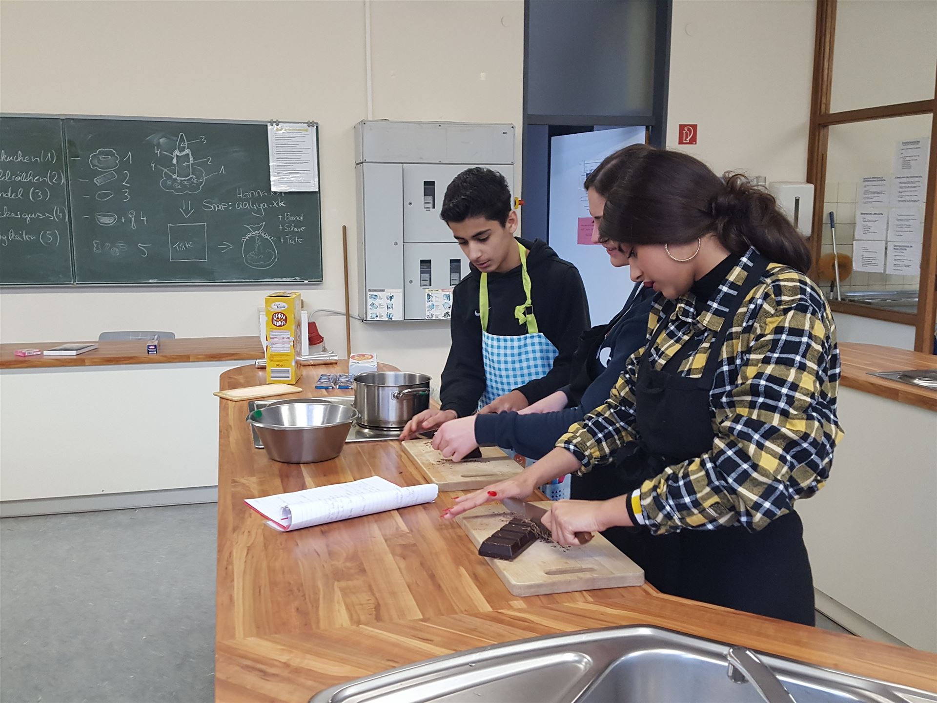 Die AH-Gruppe 8c hatte viel zu tun. Es wurden zur Präsentation des Faches Arbeitslehre Hauswirtschaft (AH) drei verschiedene Rezepte verarbeitet, das Ergebnis war gelungen und lecker.