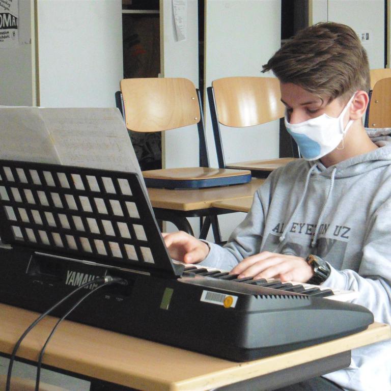 Im vorletzten Schuljahr war sie als eine reine 9er-Mädchenband gestartet, im Schuljahr 2019/2020 sind Jungs für die Jahrgangsstufe 10 dazugekommen.